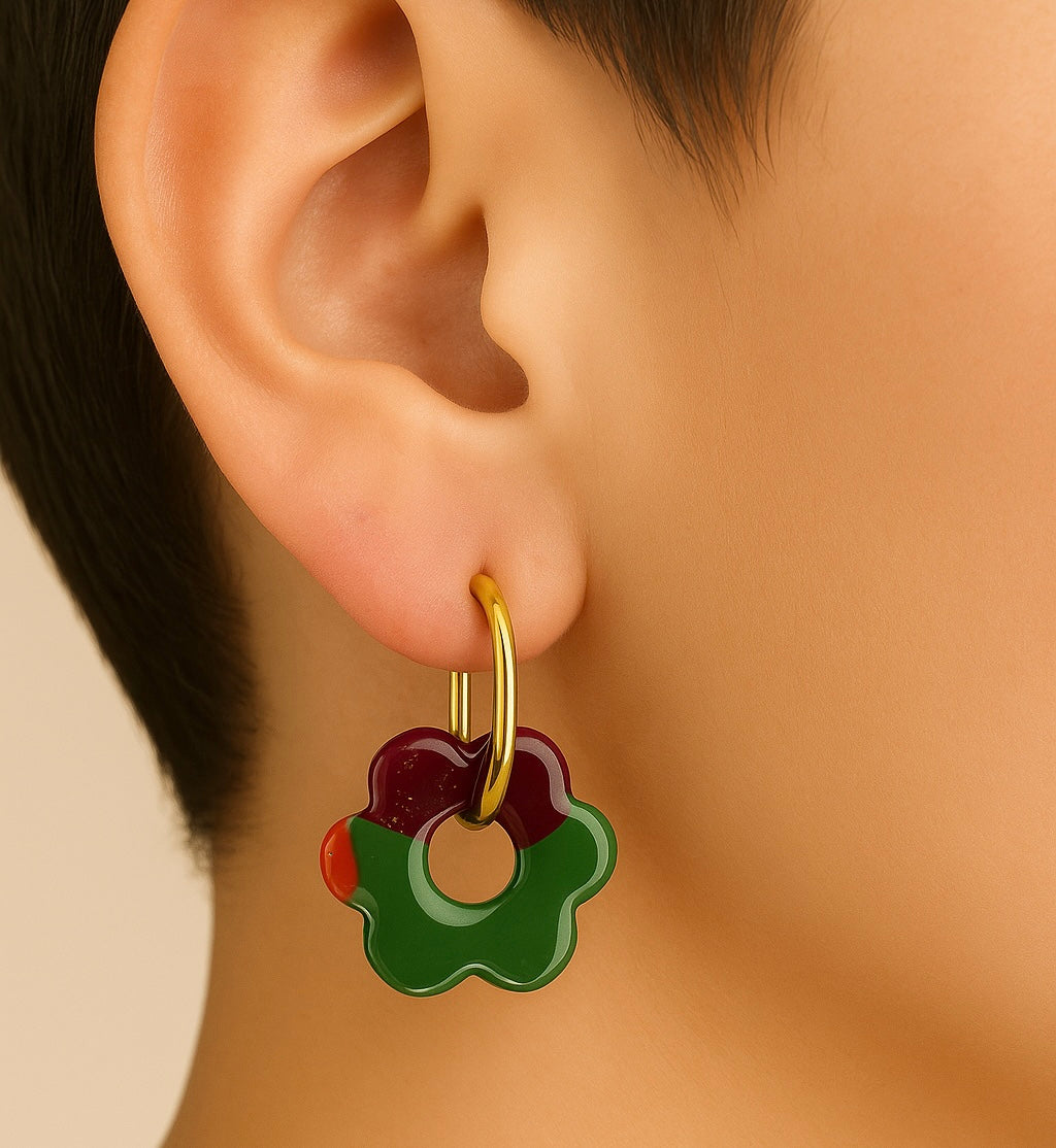 Pampilles en pâte polymère et finition en résine de 25 mn de diamètre. convient avec des créoles de 18 et 20 mm de diamètre.