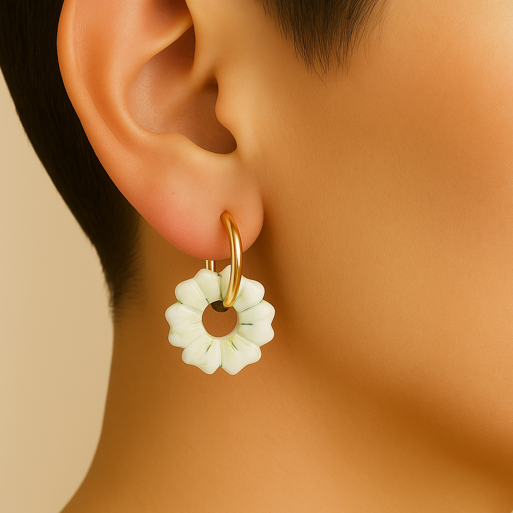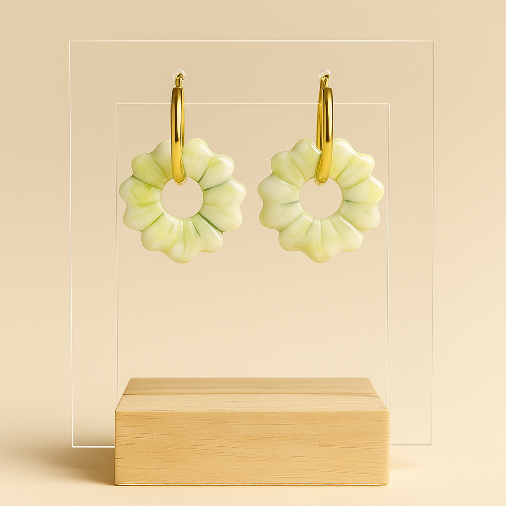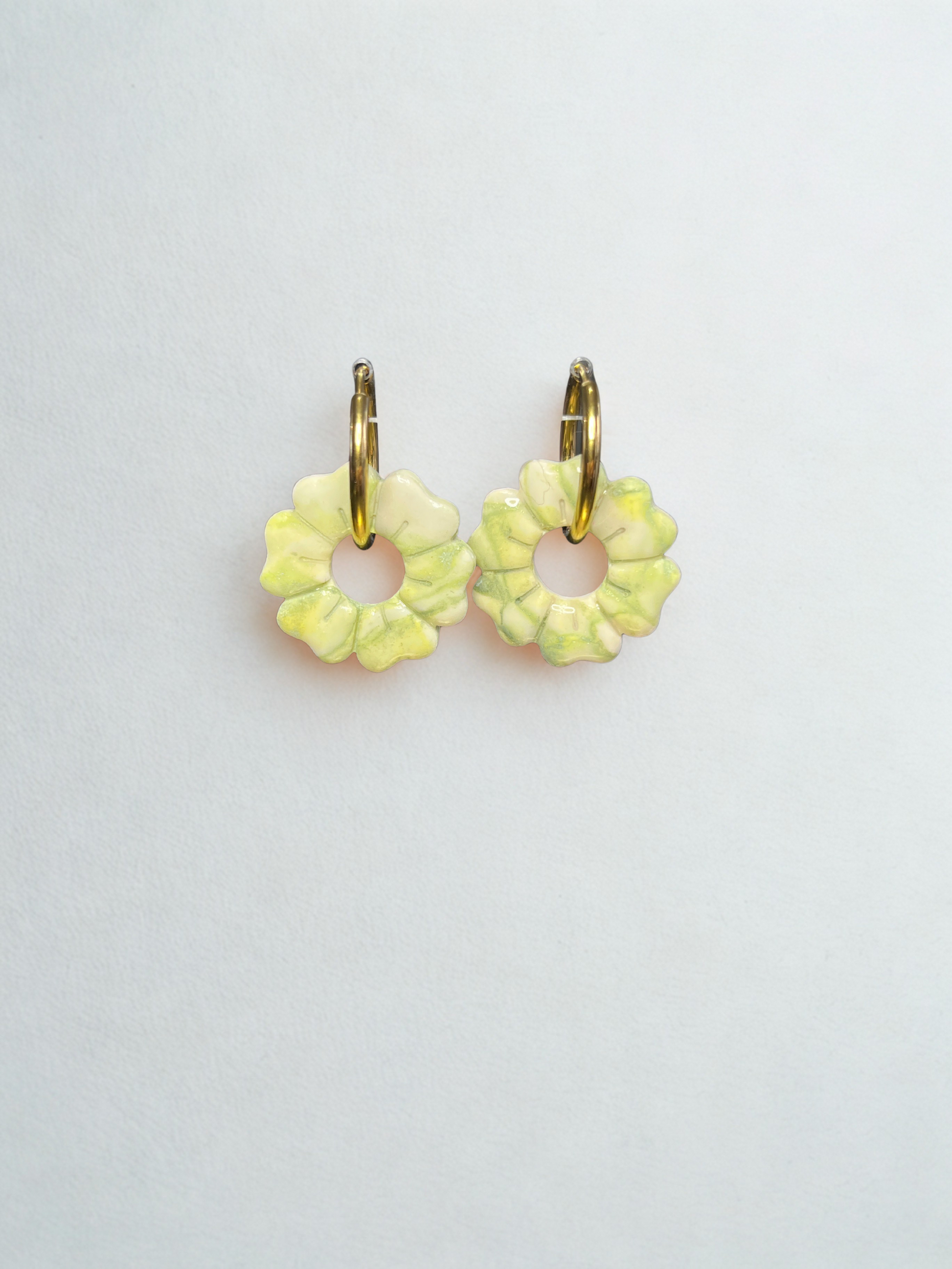 Pampille en pâte polymère et finition en résine de diamètre 25 mm. Convient avec des créoles 18 et 20 mm de diamètre.