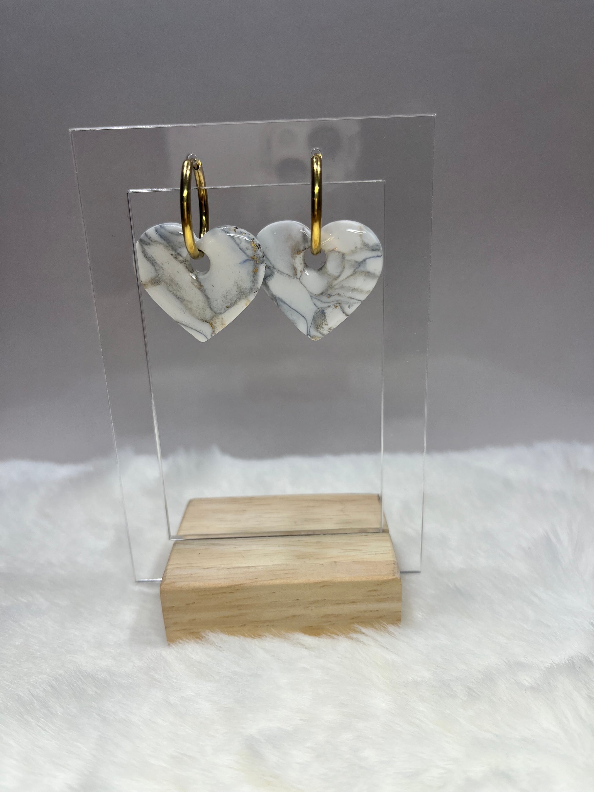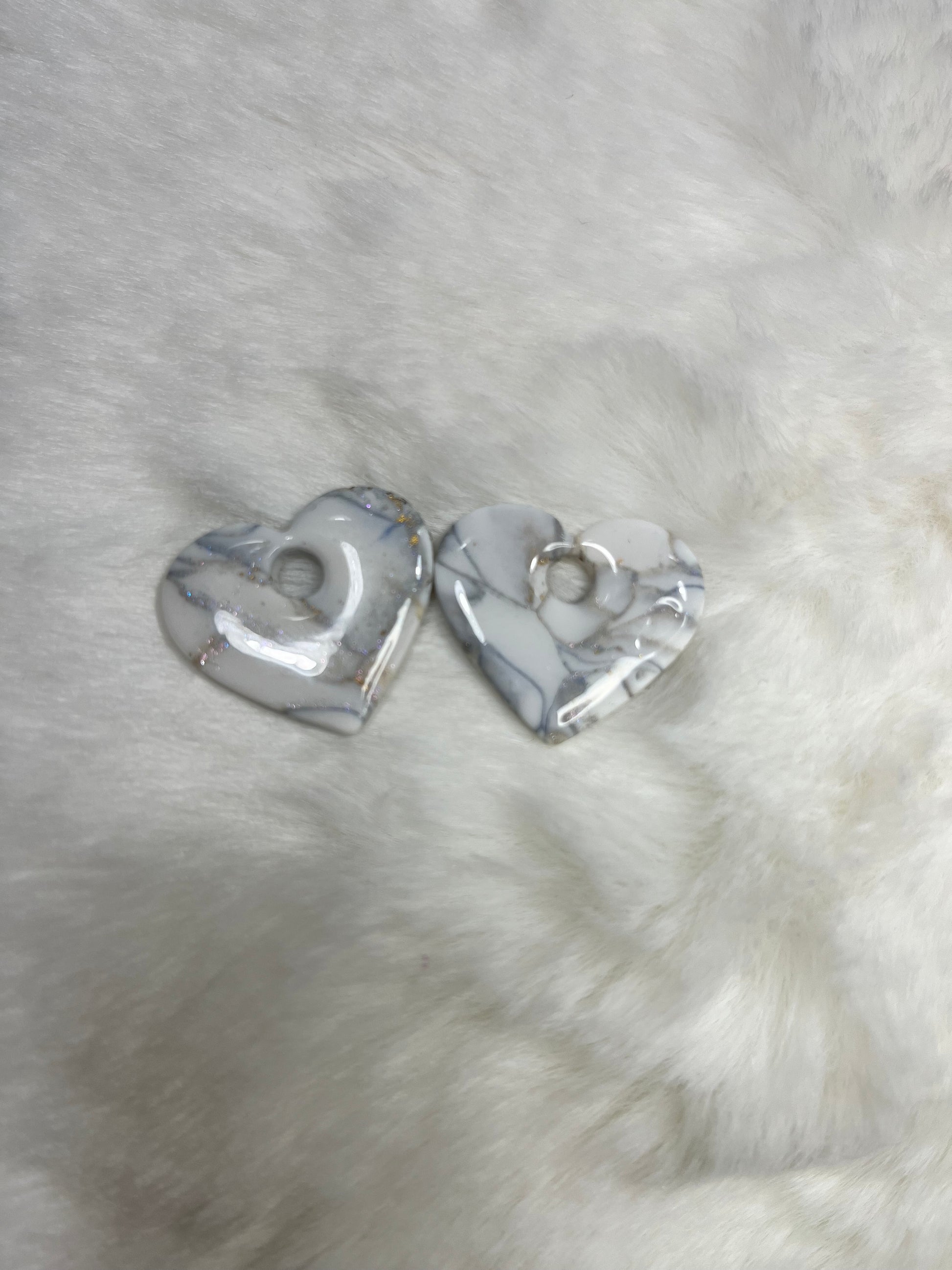 Pampilles cœur marbrées et feuille d’or en pâte polymère et finition résine de diamètre 25 mm.