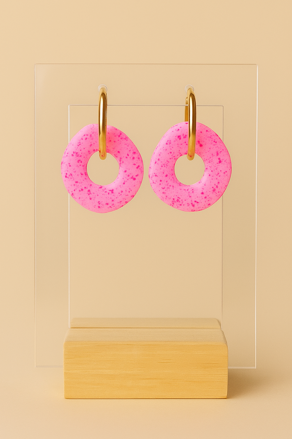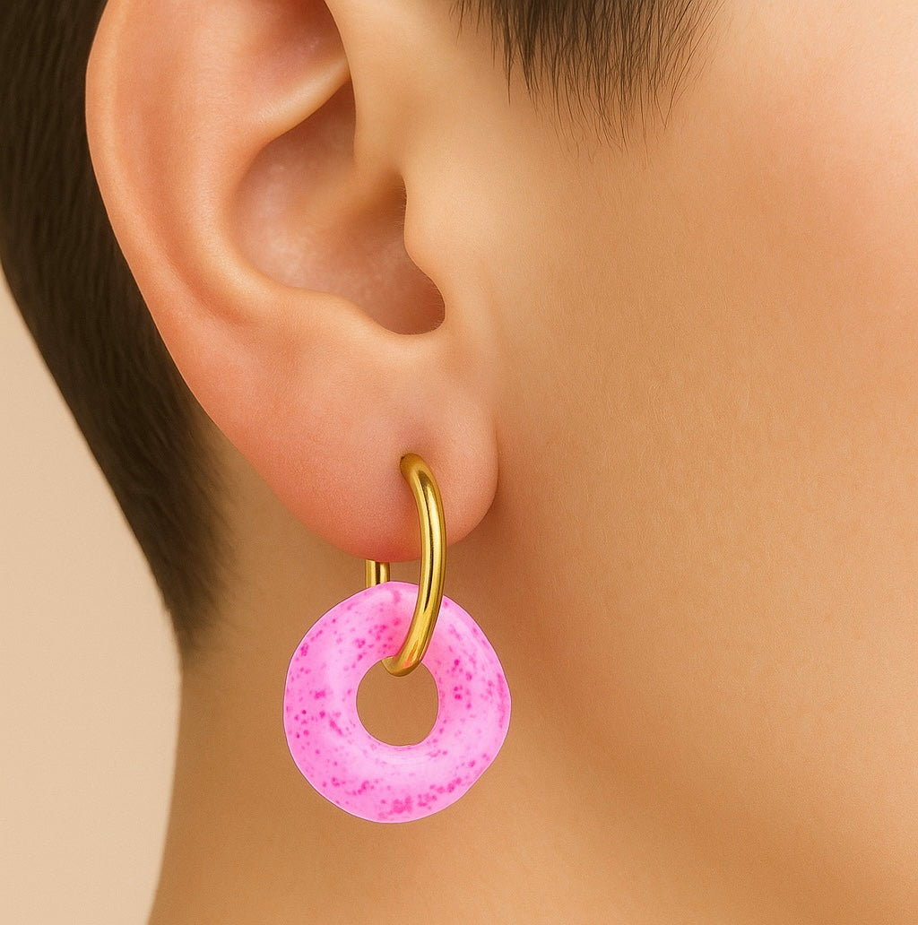 Pampilles G6K roses mouchetées de diamètre 25 mm. Convient avec des créoles de 18 et 20 mm de diamètre.