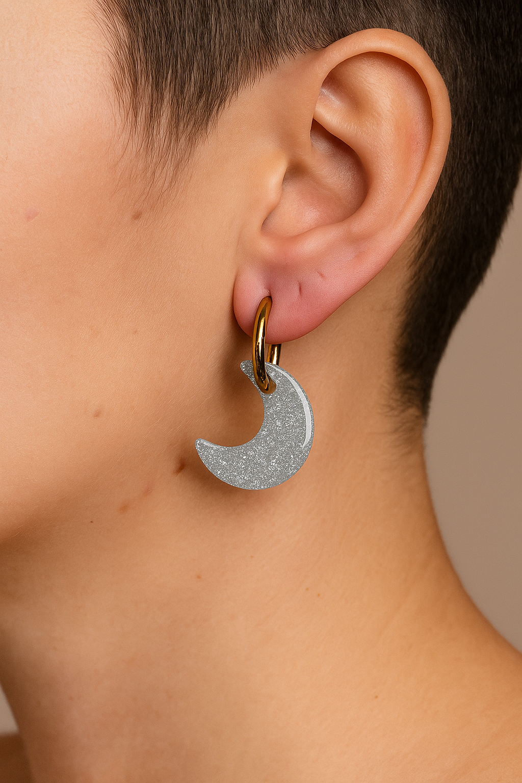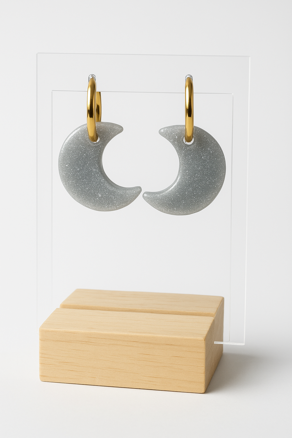 Pampilles lune en pâte polymère et finition résine de diamètre 25 mm.