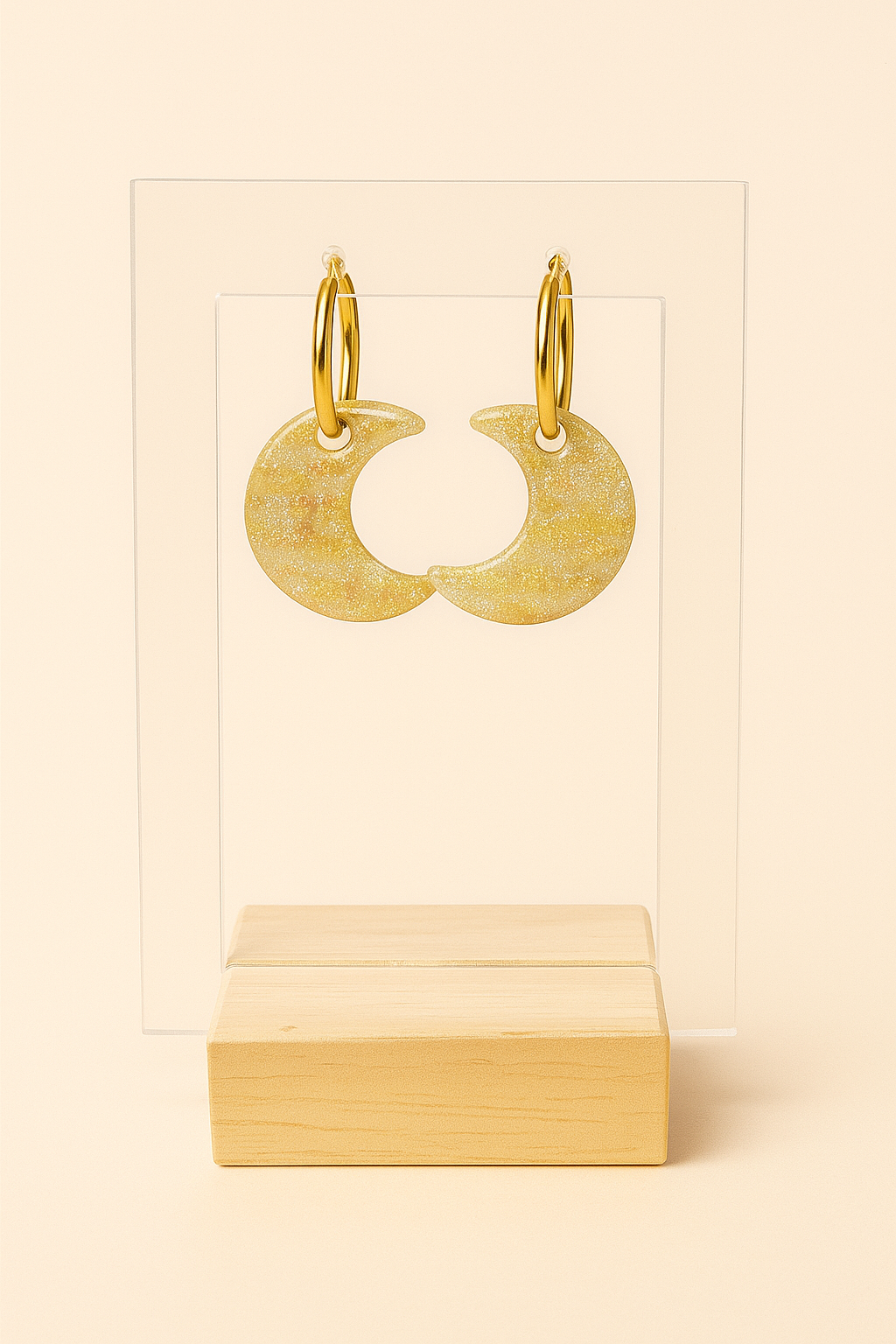 Pampilles Lune en pâte polymère et finition résine de diamètre 25 mm. Convient avec les créoles 18 et 20 mm de diamètre.