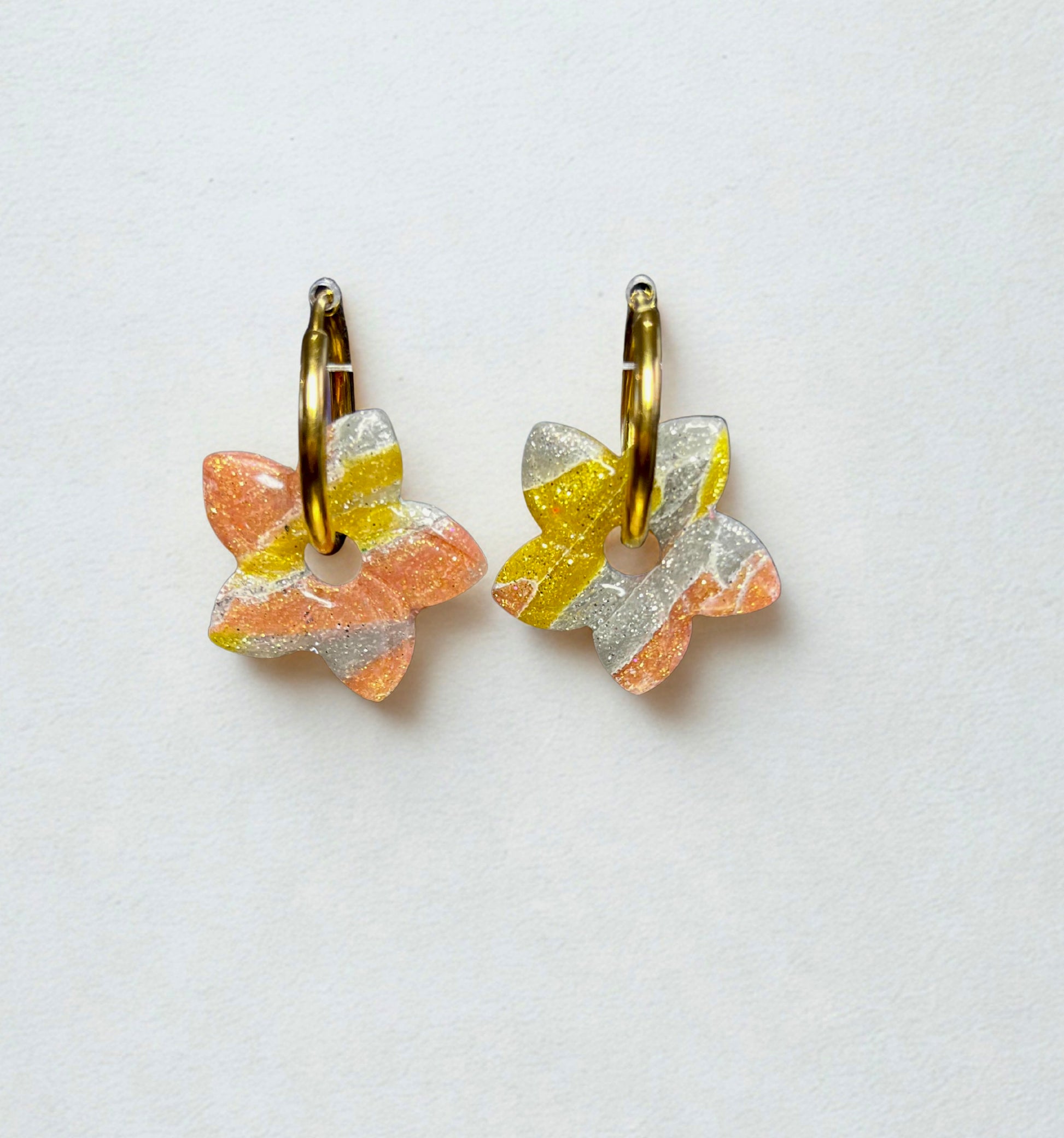 Pampilles en pâte polymère et finition en résine de diamètre 25 mm. Convient avec des créoles de 18 et 20 mm de diamètre.
